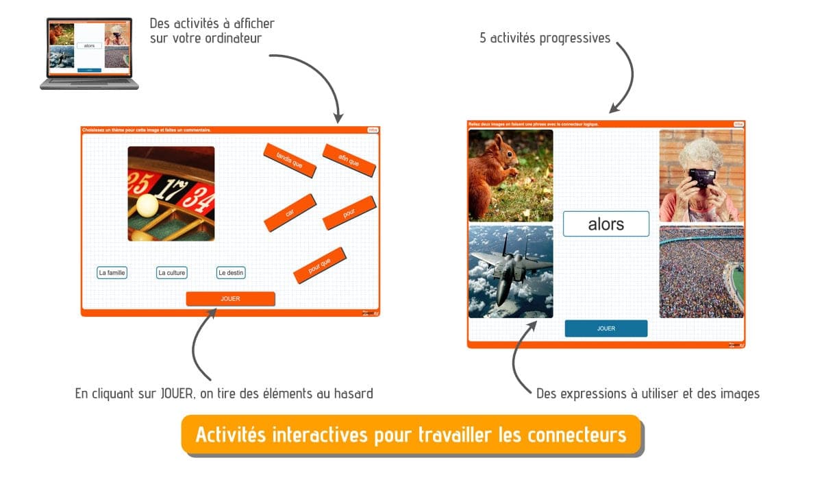 Voici 5 activités numériques utilisables sur votre ordinateur pour réviser et employer les connecteurs logiques A2 en FLE !