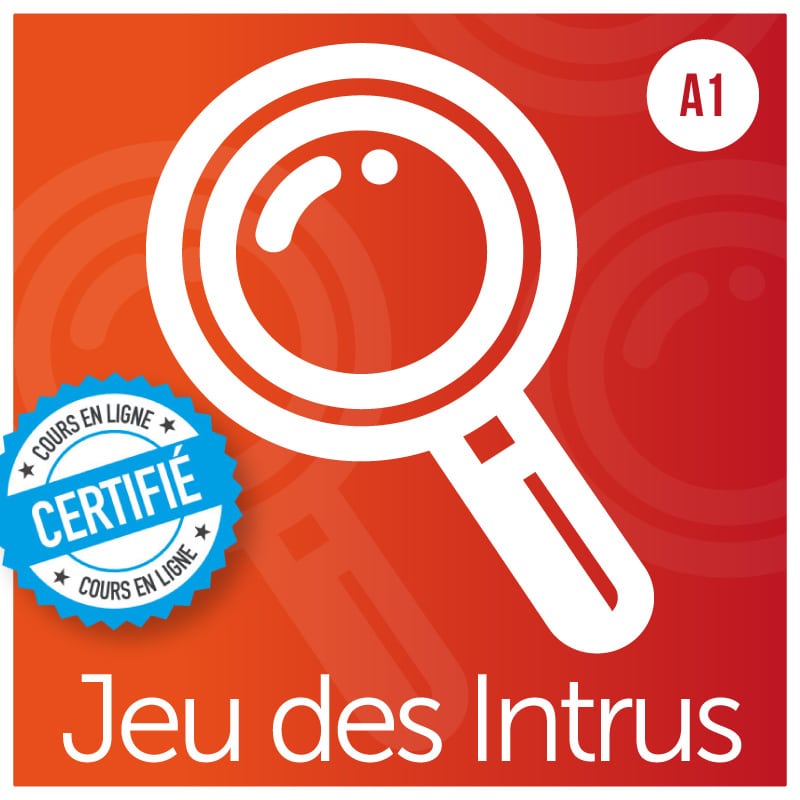Le jeu des intrus A1 est un jeu pour réviser et systématiser le lexique et la grammaire abordés au niveau A1. Le principe est simple : sur chaque carte INTRUS se trouvent 5 mots ou groupes de mots. L’un de ces mots ou groupes de mots n’appartient pas à la même catégorie que les autres, c’est donc l’intrus que les apprenants doivent trouver.