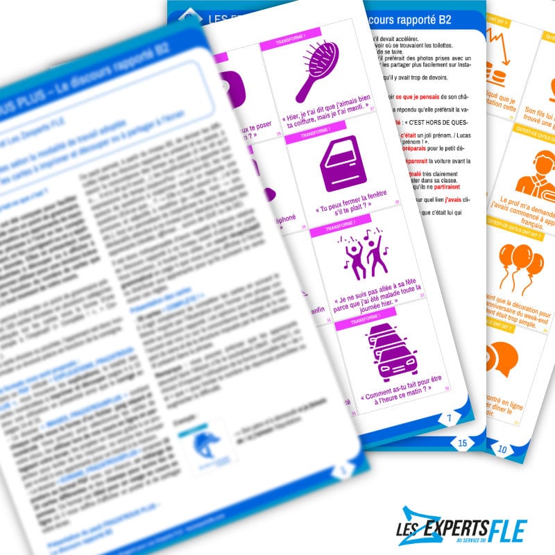 Le pack FRAZATROUS PLUS – Le discours rapporté B2 permet, à partir du niveau B2 en FLE, de travailler sur les difficultés liées à l’utilisation de la concordance des temps, des verbes introducteurs et d’autres modifications nécessaires pour produire des phrases au discours rapporté.