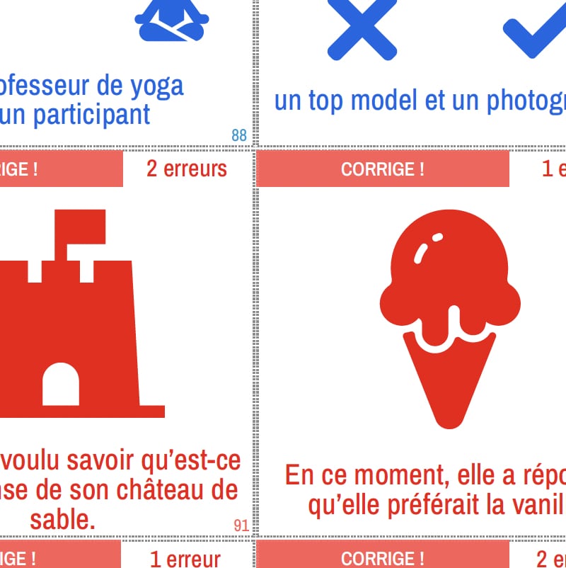 Chaque pack permet d’aborder un point de grammaire précis et contient 100 cartes divisées en plusieurs catégories de défis.