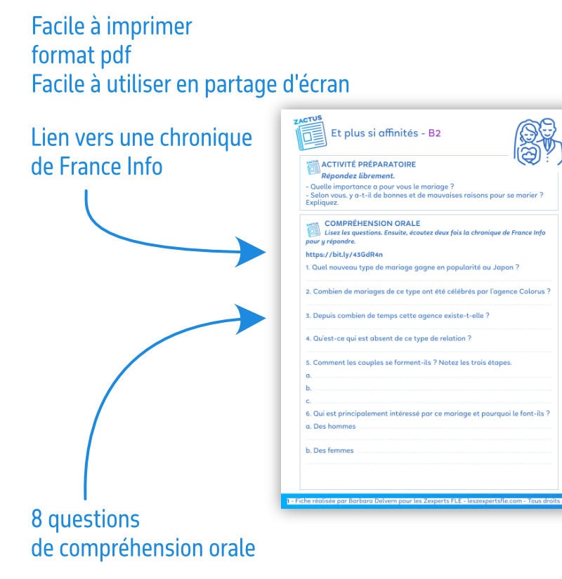 Parlez du mariage et des relations amoureuses et amicales avec vos apprenants du niveau B2 !